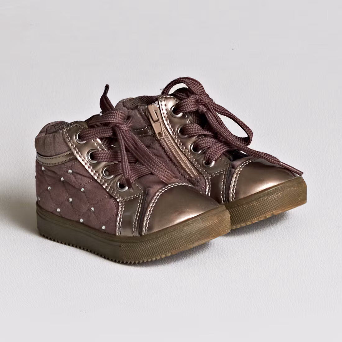 Sula släppt lite från tyget vid tårna på ena skon. Liten vit fläck på ena skon.