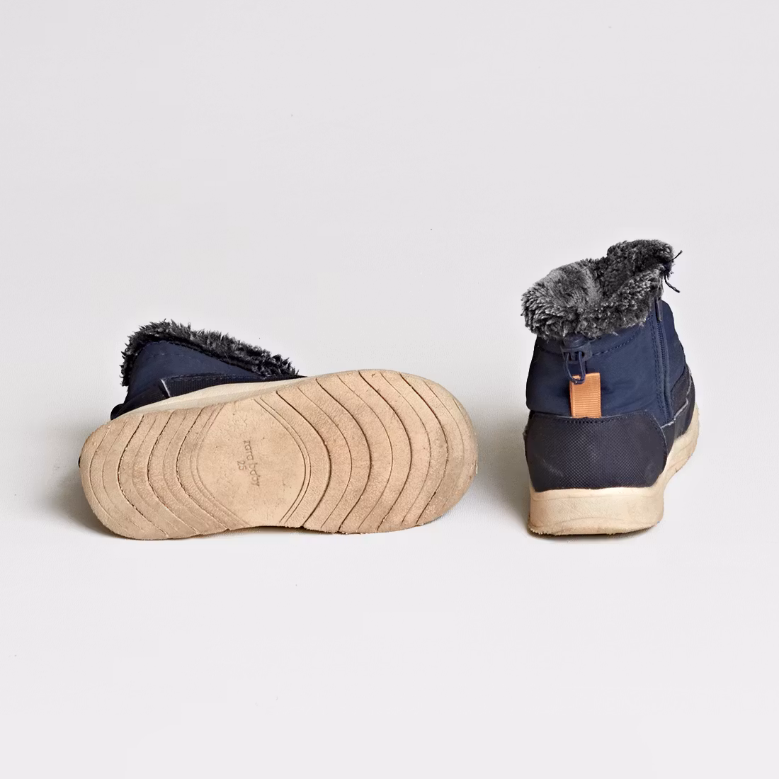 Skick C: Skorna är slitna och det kan vara repor eller att smuts finns på vissa ställen, men fullt funktionsdugligt. Detaljer som blixtlås, reflexer, kardborre eller resår fungerar, men kan vara slitna. Skorna har inga hål.