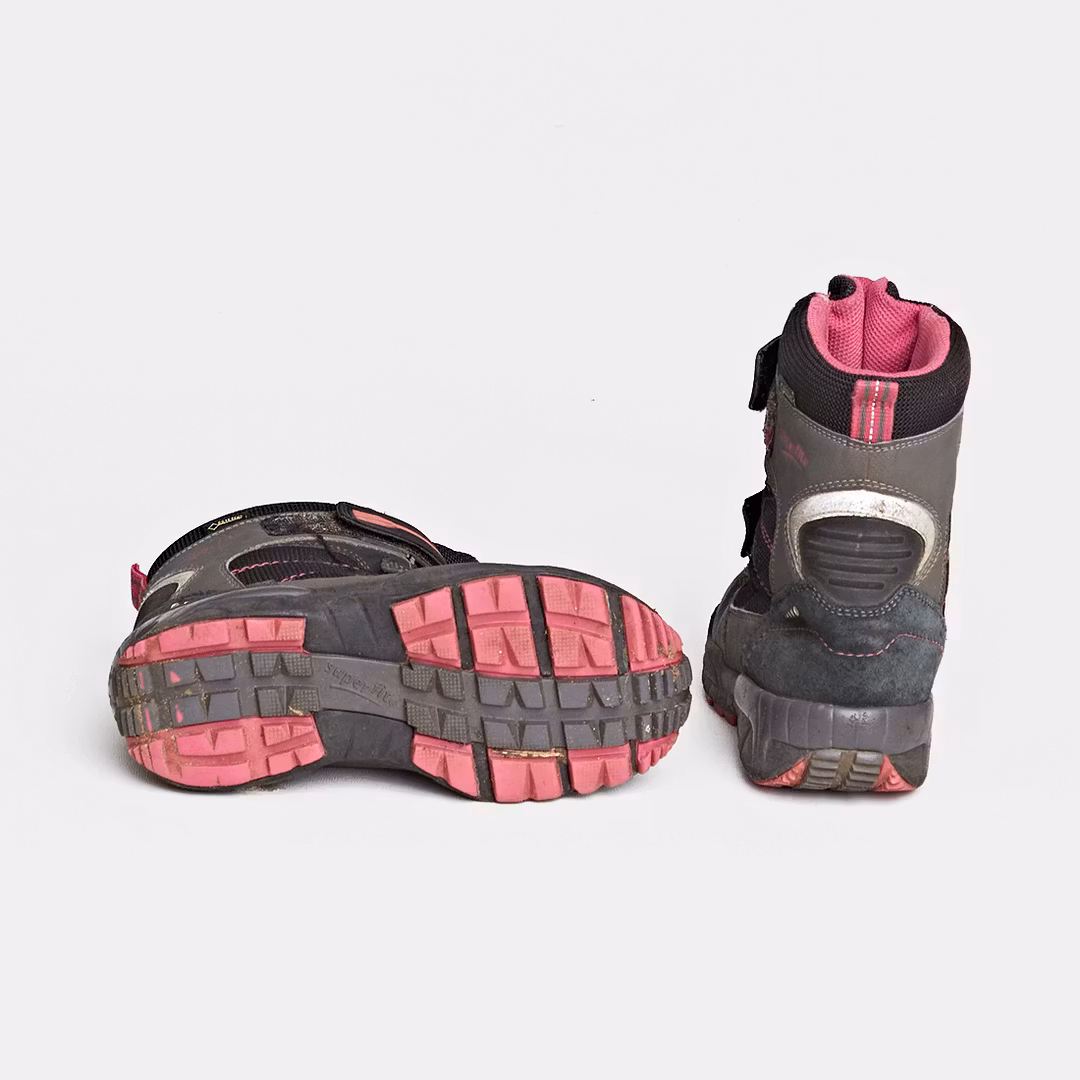 Skick A: Skorna är i mycket fint skick, antingen helt nya eller använda väldigt sparsamt. Skorna har inga synliga slitningar och alla detaljer som blixtlås, reflexer, kardborre, knappar och resår är i fint skick. Skorna är hela och rena.Skick B: Skorna är använda, men funkar utmärkt med alla funktioner. Detaljer som blixtlås, reflexer, kardborre, knappar och resår fungerar, men tecken på användning kan finnas. Skorna kan liknas med att ärva det från ett syskon. Skorna är tvättade men smuts finns.