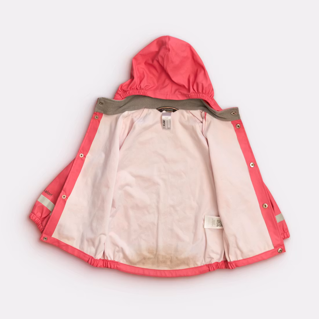 Skick A: Ytterplagget är i mycket fint skick, antingen helt nytt eller använt väldigt sparsamt. Plagget har inga synliga slitningar och alla detaljer som blixtlås, reflexer, kardborre, knappar och resår är i fint skick. Plagget är helt och rent.