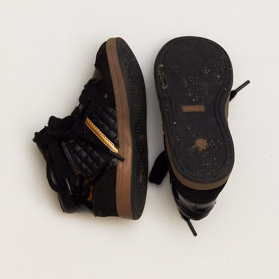 Skick C: Skorna är slitna och det kan vara repor eller att smuts finns på vissa ställen, men fullt funktionsdugligt. Detaljer som blixtlås, reflexer, kardborre eller resår fungerar, men kan vara slitna. Skorna har inga hål.
