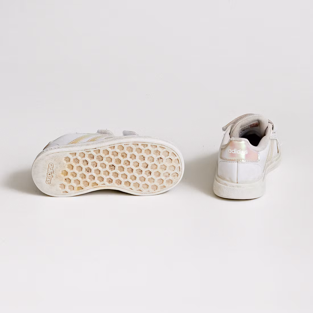 Skick D: Skorna är slitna, skavda och smuts finns på vissa ställen.
