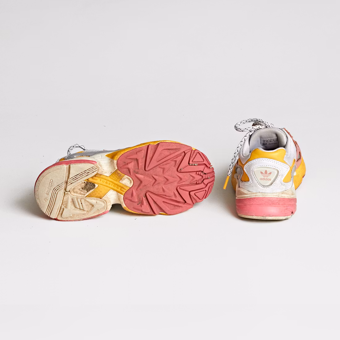 Skick D: Skorna är slitna, skavda och smuts finns på vissa ställen.
