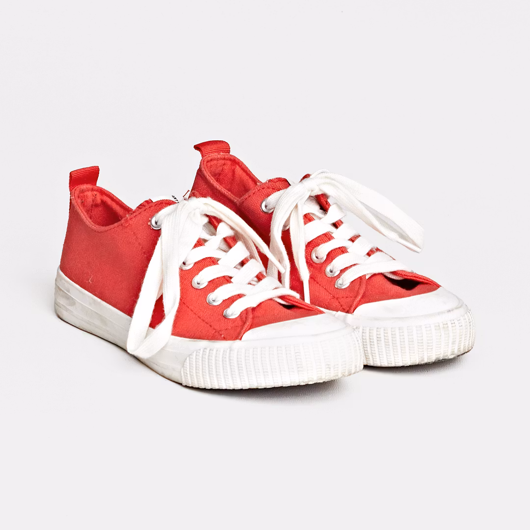 Skick D: Skorna är slitna och skavda och smuts finns på vissa ställen.