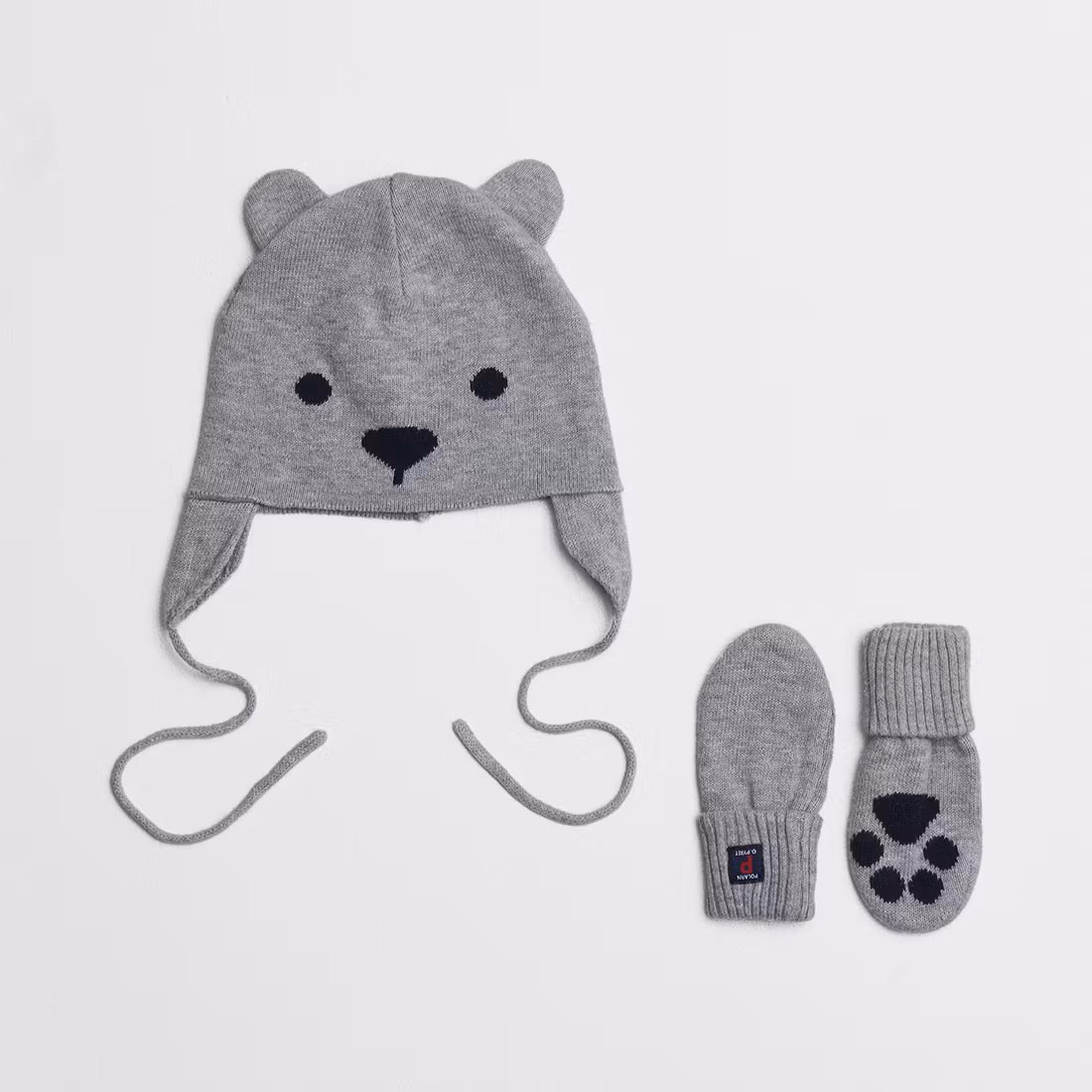 1 tunn stickad mössa med tillhörande set av produkter från Polarn O. Pyret i skick A.