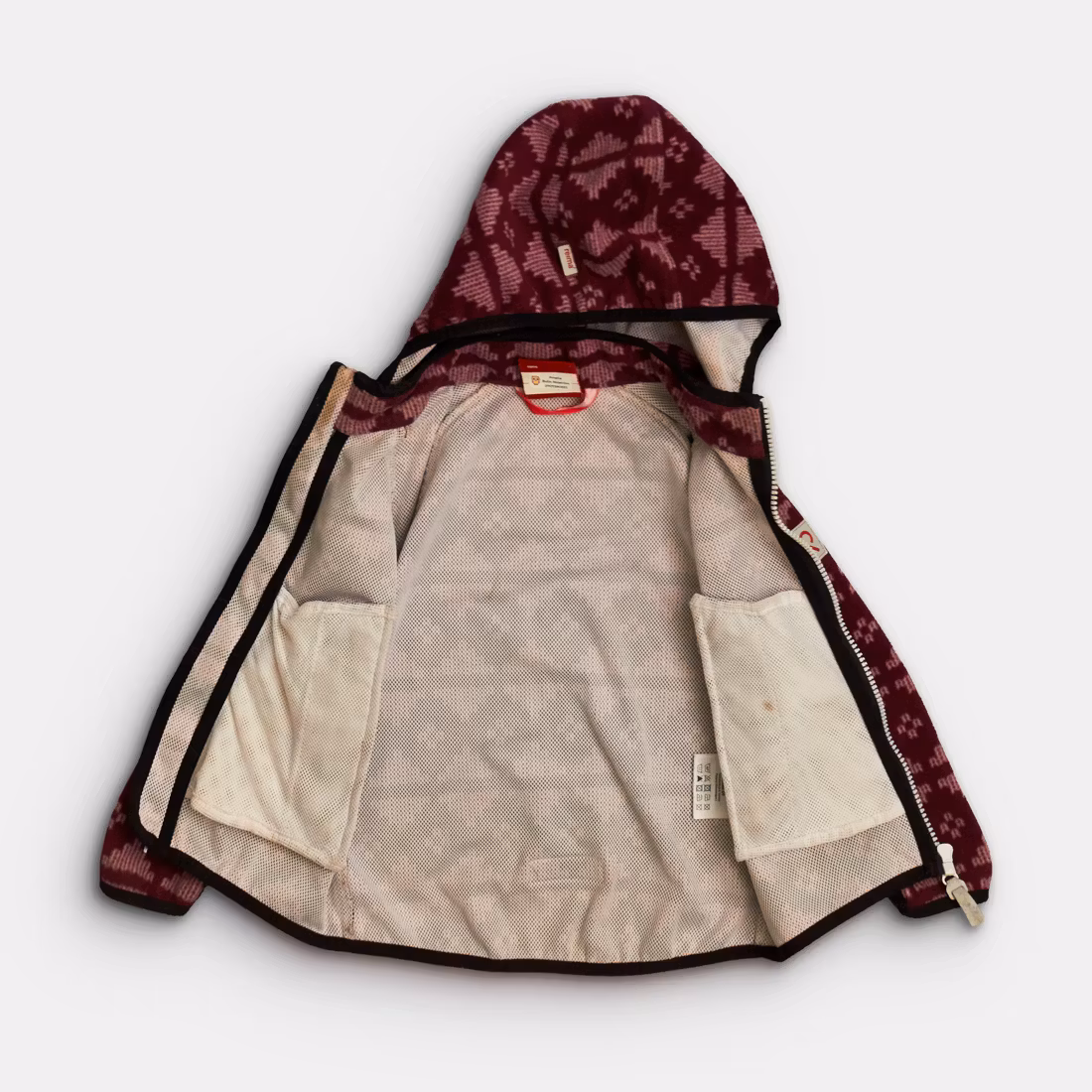 Skick C: Ytterplagget är slitet och det kan vara skavt eller noppigt på vissa ställen, men fullt funktionsdugligt. Detaljer som blixtlås, reflexer, kardborre eller resår fungerar, men kan vara slitna. Nyansfläckar kan finnas på plagget och plagget kan kännas äldre, större fläckar beskrivs i texten.