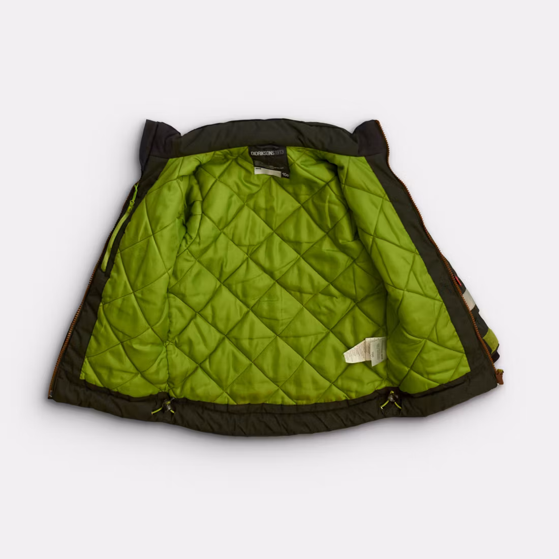 Skick A: Ytterplagget är i mycket fint skick, antingen helt nytt eller använt väldigt sparsamt. Plagget har inga synliga slitningar och alla detaljer som blixtlås, reflexer, kardborre, knappar och resår är i fint skick. Plagget är helt och rent.
