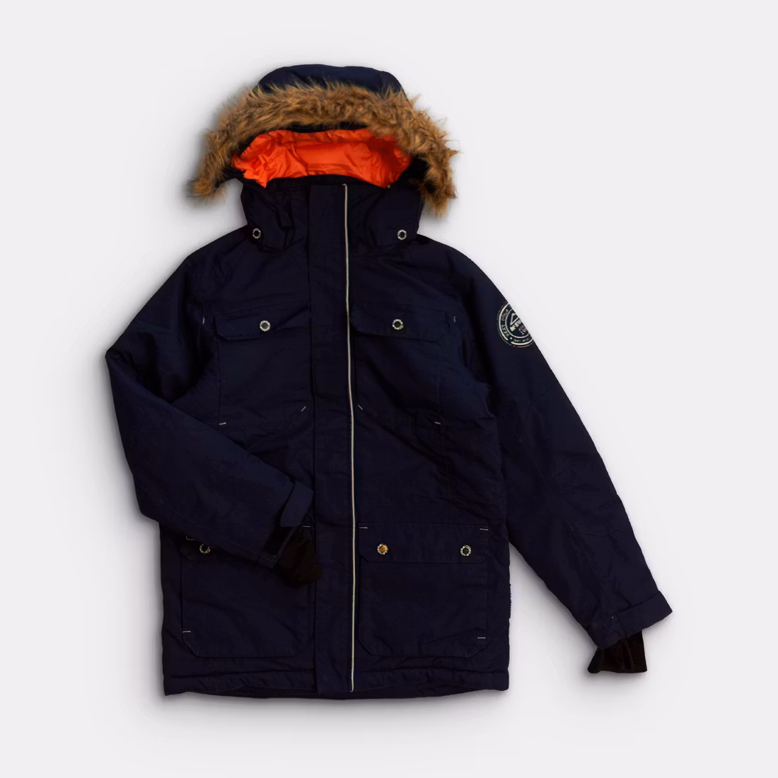 Skick C: Ytterplagget är slitet och det kan vara skavt eller noppigt på vissa ställen, men fullt funktionsdugligt. Detaljer som blixtlås, reflexer, kardborre eller resår fungerar, men kan vara slitna. Nyansfläckar kan finnas på plagget och plagget kan kännas äldre, större fläckar beskrivs i texten.