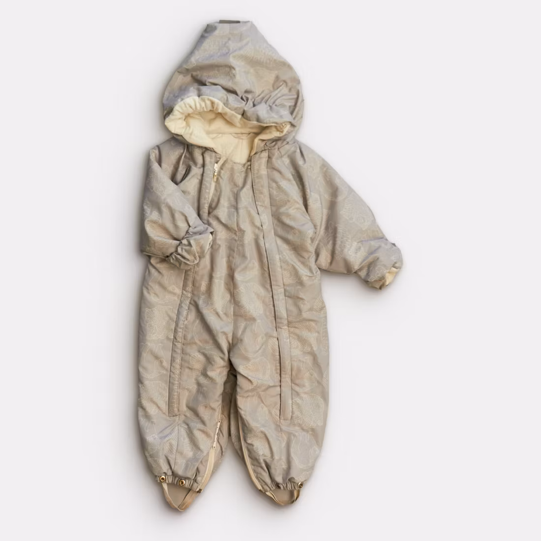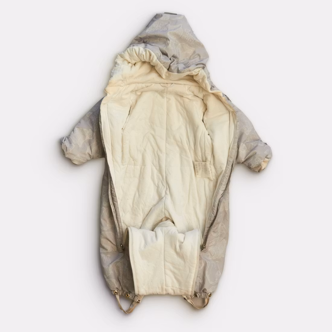 - Något noppigt foder. Produkten är lite smutsig/har ytligt smuts. Märkt som storlek 68-74.