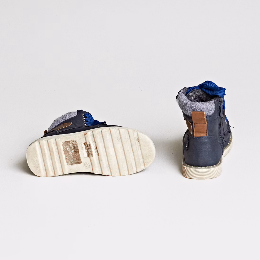 Skick C: Skorna är slitna och det kan vara repor eller att smuts finns på vissa ställen, men fullt funktionsdugligt. Detaljer som blixtlås, reflexer, kardborre eller resår fungerar, men kan vara slitna. Skorna har inga hål.